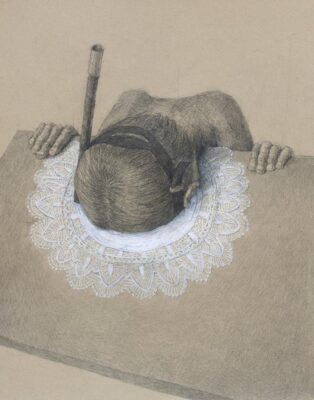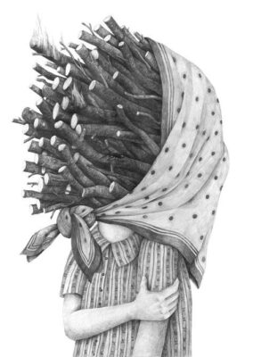 Co się tu kryje? Czy warto patrzeć? Może lepiej zasłonić oczy, nie widzieć, nie słyszeć, nie dotykać. Podmiota odważnie wchodzi do środka. Ja idę za nią.